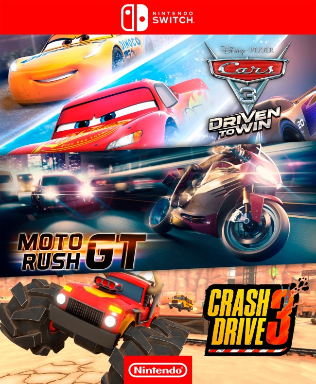 3 juegos en 1 Cars 3 Driven To Win mas Moto Rush GT mas Crash Drive 3 - Nintendo Switch