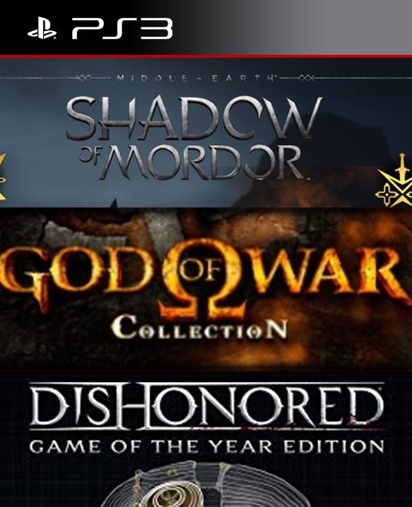 3 juegos en 1 Edición Legión de La Tierra Media: Sombras de Mordor mas God of War Collection mas Dishonored Game of the Year Edition ps3