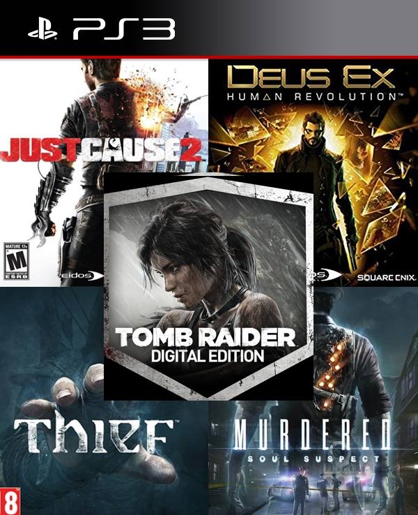 5 Juegos en 1 Deus ex mas Just cause 2 mas Thief mas murdered mas Tomb Raider
